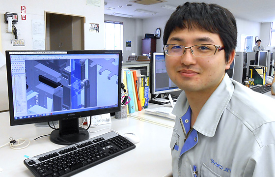 - 新規品の設計から製造までの一連の作業を任されているので、責任は重いのですが、やりがいを感じています。自分の思った通りの設計ができ、お客様に喜んで頂けた時は感動します。また、分からない事や疑問に思うことも上司に相談でき、働きやすい環境です。